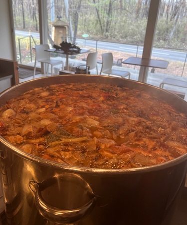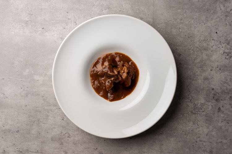 たっぷりの赤ワインと香味野菜でじっくりと丁寧に煮込んでおります。